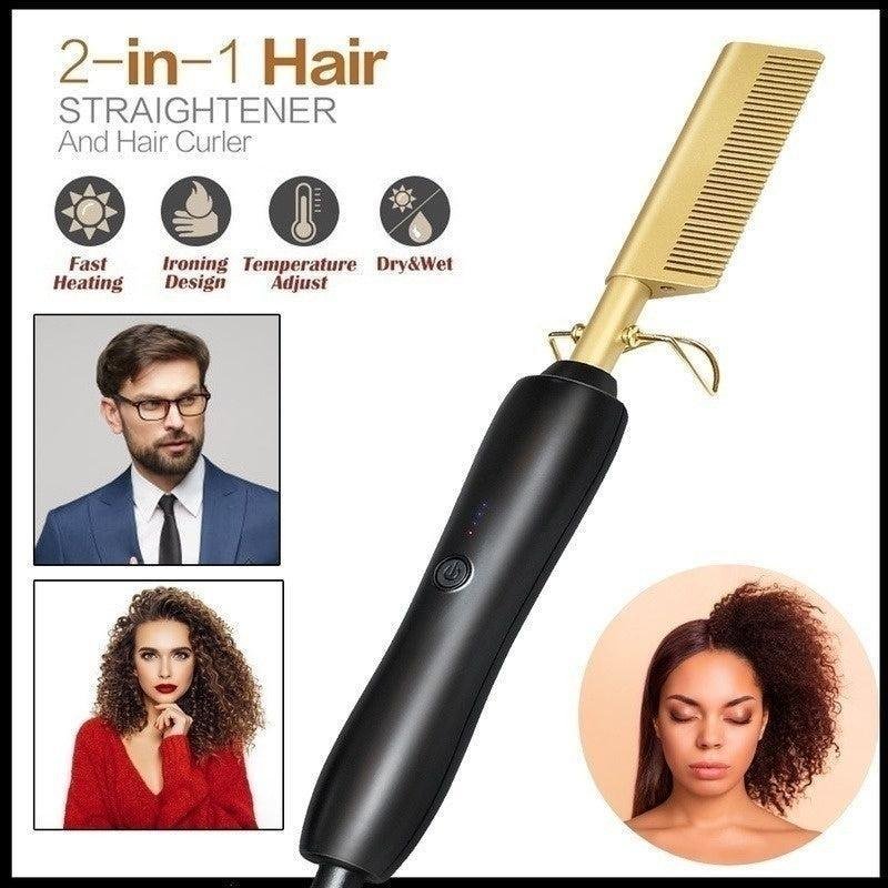 Hair Curling Iron Straightener Comb Copper 110-240V Hair Styling Tools
