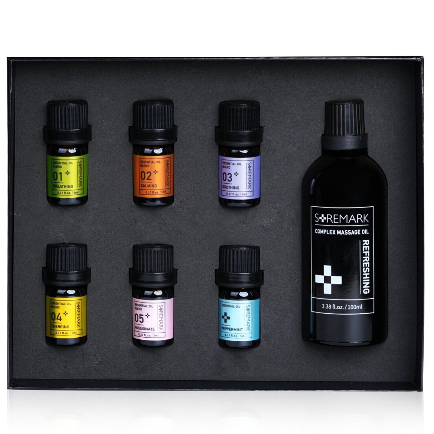 "2022 Global Green Beauty Awards- BEST NATURAL BODY PRDDUCT"LOHAS Essential Oil Set:1x Stremark Complex Massage Oil (Refreshing) - 100ml/3.38oz1x Stremark Essential Oil Blend 01 - Breathing - 5ml/0.17oz1x Stremark Essential Oil Blend 02 - Calming - 5ml/0.17oz1x Stremark Essential Oil Blend 03 - Soothing - 5ml/0.17oz1x Stremark Essential Oil Blend 04 - Energing - 5ml/0.17oz1x Stremark Essential Oil Blend 05 - Passionate - 5ml/0.17oz1x Stremark Essential Oil - Peppermint - 5ml/0.17ozWith the natural healing master, pure lavender essential oil from Provence, it helps people to find the cure, creating a healthy lifeStremark Breathing Essential Oil Blend 01 5mlFunction: The fresh scent makes breathing easier and it has protective and purifying effectsStremark Calming Essential Oil Blend 02 5mlFunction: The scent helps to relax and make you feel more comfortableStremark Soothing Essential Oil Blend 03 5ml
