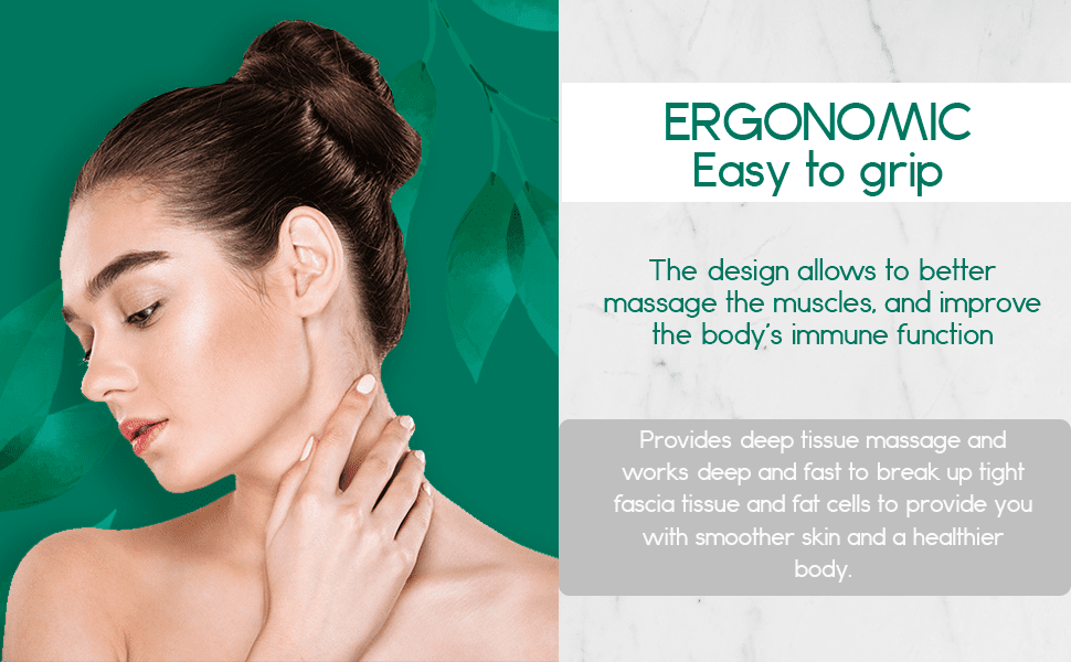 ERGONOMIC. Easy to grip. The design allows for better massage of the muscles; improves the body's immune function; achieves the effects of decompression; repels fatigue; and improves sleep. It helps relieve pain; soreness; aches; and knots. Increases blood circulation and reduces the risk of injury. It provides deep tissue massage and works deep and fast to break up tight fascia tissue and fat cells to provide you with smoother skin and a healthier body.