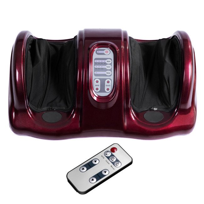 2 sets to fit your needs: automatic setting and personalized settingFeatures 4 modes in an automatic setting to fit your needs and likesDesigned with a manual setting to adjust speed and directionRemote controller for convenient control of the massagerMade of ABS material, foam and fabric for durability and comfortCompact size and lightweight for effortless storage and portabilityIdeal indoor stress reliever in work and leisure timeEasy to cleanFits up to US Men's Size 10, US Women's Size 12; Fits up to calf circumference: 15 inches